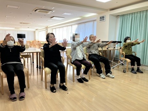 『部屋でじっとしててもあかん』とご参加いただいた方、『このレク好きやねん』と仰り参加された方など動機は様々ですが、皆さま身体を動かされ、リラックスされたご様子でした。