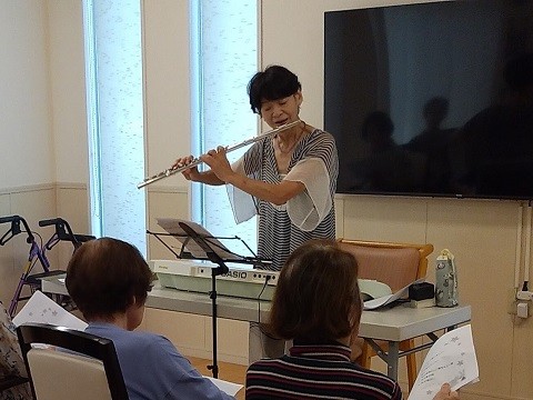 フルート奏者をお招きし季節の歌やクラシック、映画音楽などいろんなジャンルの曲を演奏して頂きました。