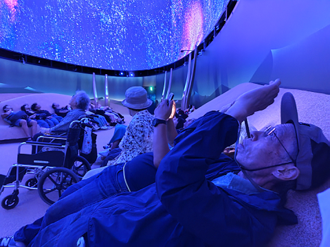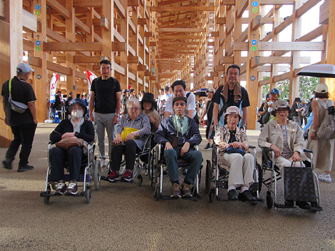 『株式会社ハートフルサンク』さまのご協力による万博ツアーを開催。万博も終盤に近づき入場者の多さにビックリでした!フランス、サウジアラビア、クウェートのパビリオンを見学していただき、「感動した~!来れて良かった♪」「一人じゃ来れなかったよ。ありがとう!」「3つも入れた!どこの国もすばらしいね」と喜んでいただけました。夕食は大阪のれんで海鮮丼と神座のラーメンを召し上がっていただきました。最後に大屋根リングから水上ショーを観覧、「綺麗ね~」「ショーが見れるなんて、うれしい♪」と大満足の一日でした!