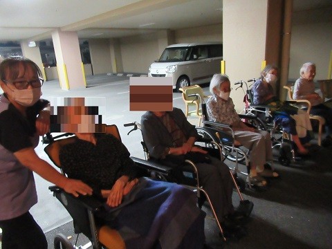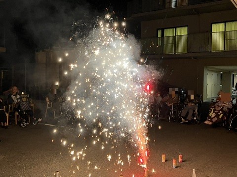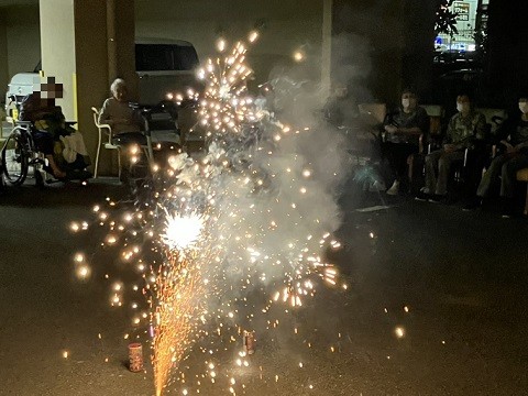 「花火なんていつ以来やろ?」「結構迫力あるね」「色がきれい」など、お話も楽しまれながら、ご覧になっておられました。