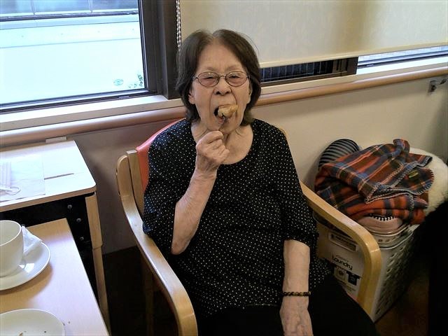 この日も30名を超えるご入居者さまお越しになられ、お取り寄せした『秋のスイーツ』でお祝いいたしました♪