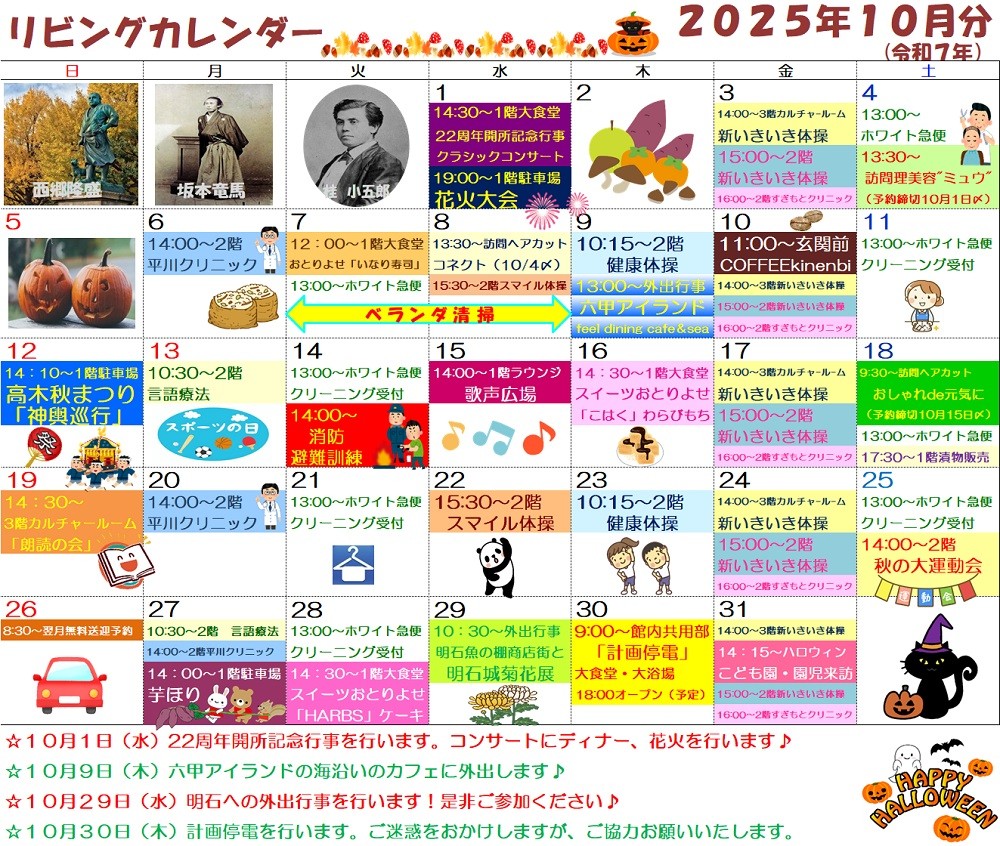 『10月のリビングカレンダー』も施設行事満載の内容となっております♪
