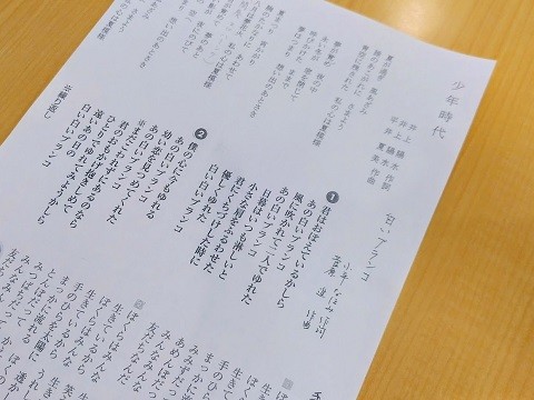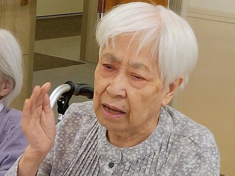 『夕焼け小焼け』『赤とんぼ』などの懐かしい童謡や『少年時代』などの歌謡曲も歌詞を見ながら熱心に歌い上げました。