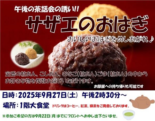 (西宮)秋の入り口!今月の茶話会は『サザエのおはぎ♪』