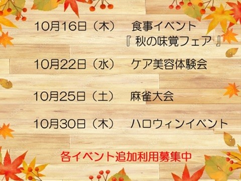 9月29日、デイサービスセンター ナービス堂山公園より10月に開催する『イベント』のご紹介をさせていただきます。