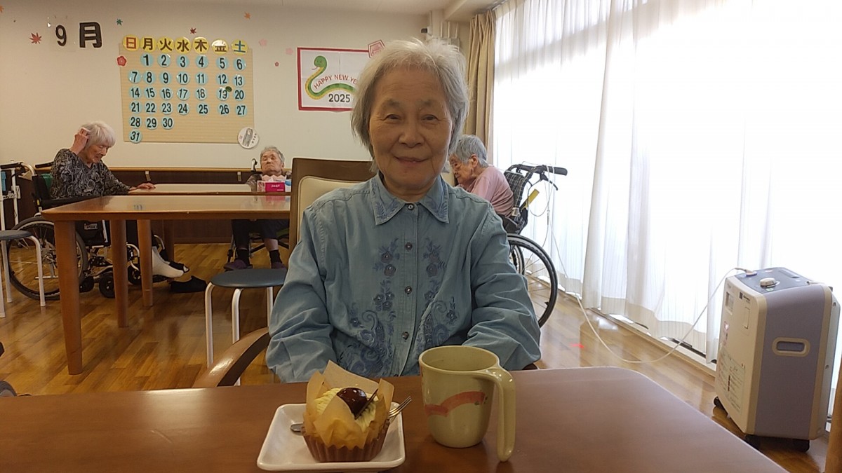 いつものおやつより、大きなケーキに皆さまびっくり!しながらも「美味しいね!」と話しながらペロリと完食されていました。