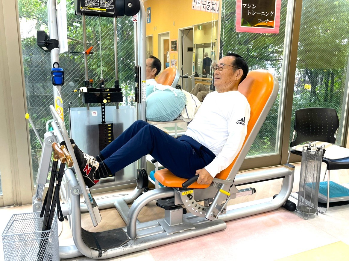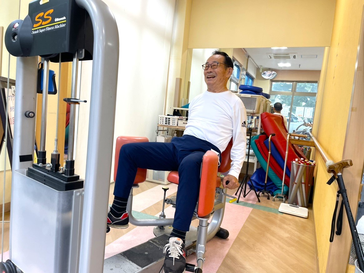 Sさまは『ヘルニア』を患っておられ、負荷がかかると『腰痛』が出現し、思ったように身体を動かすことが出来ず悩んでおられました。また『うっ血性心不全』や『心臓弁膜症』により入退院を繰り返し、下肢筋力の低下にも不安を感じておられました。そんな中「このままではいけない!」、なんとか入院前の状態に近づきたいという強い思いで当センターの利用を開始され、マシントレーニングや生活動作の運動、自主トレーニングに一生懸命に取り組んでこられました。ご利用を開始される前は、ご家族さまと一緒に買い物に行かれても、ご自身は買い物には同行できず車内で待つことしかできず『悔しい想い』をされていたそうです。それが8か月間、当センターでのリハビリを続けてこられた結果、車内で待つのではなく買い物カートと杖を持ちながら「家族と買い物を楽しむことができるようになった」と大変喜んでおられました。また、腰痛もあることから、以前は靴下を履く時にベッド下に台を置いてご家族にも手伝ってもらっていたそうですが、今では台を置かずに『自分で靴下を履くことが出来るようになった』そうです。それも、生活動作の運動で靴下の着脱の運動にしっかり取り組んできたおかげだと大変喜んでおられました。