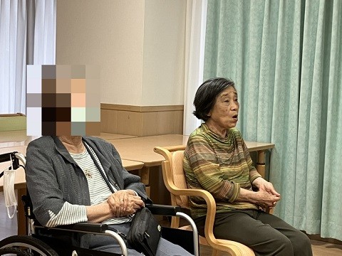 「よく声が出てますなぁ」「この曲、昔流行りましたね」など、ご入居者さま同士の会話も弾んでおられます。