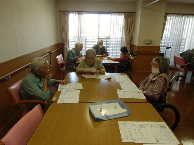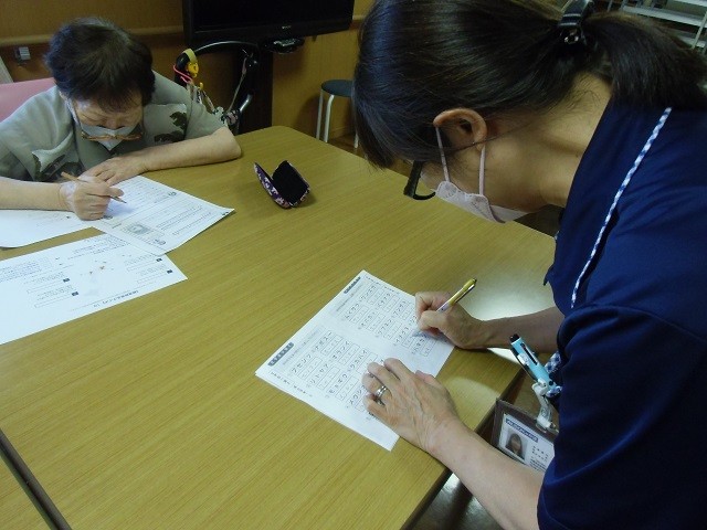 10月1日、ナービス藤井寺恵美坂では、毎月恒例の『脳トレ体操』にチャレンジして頂きました。