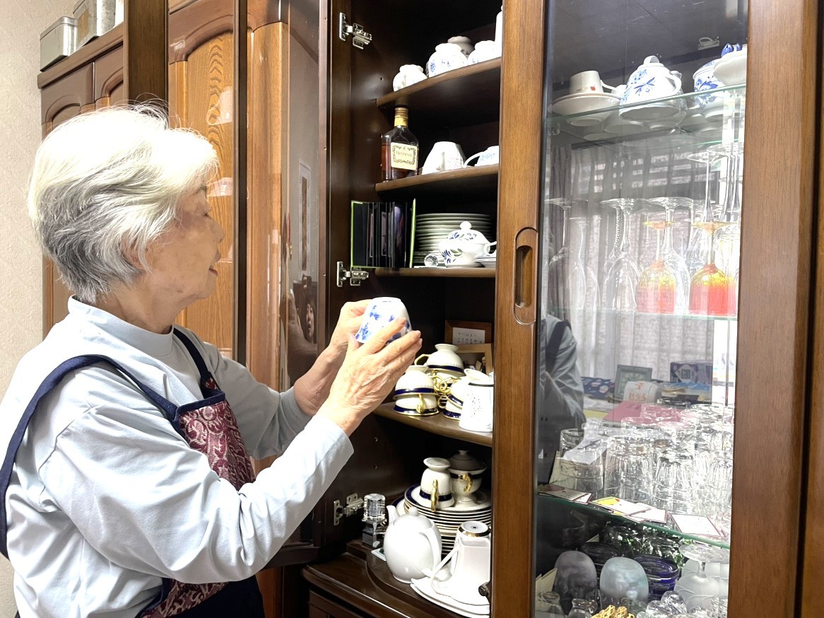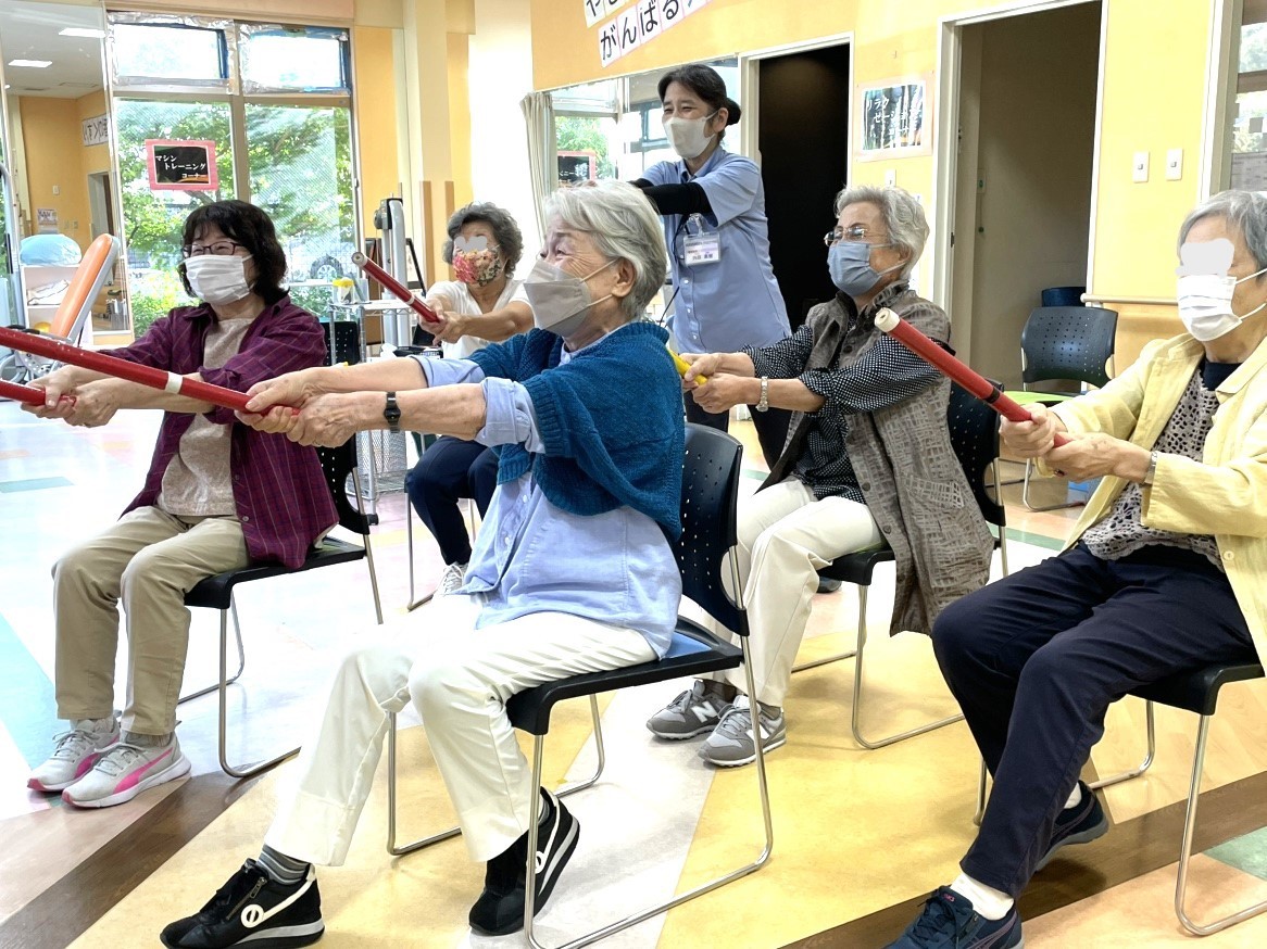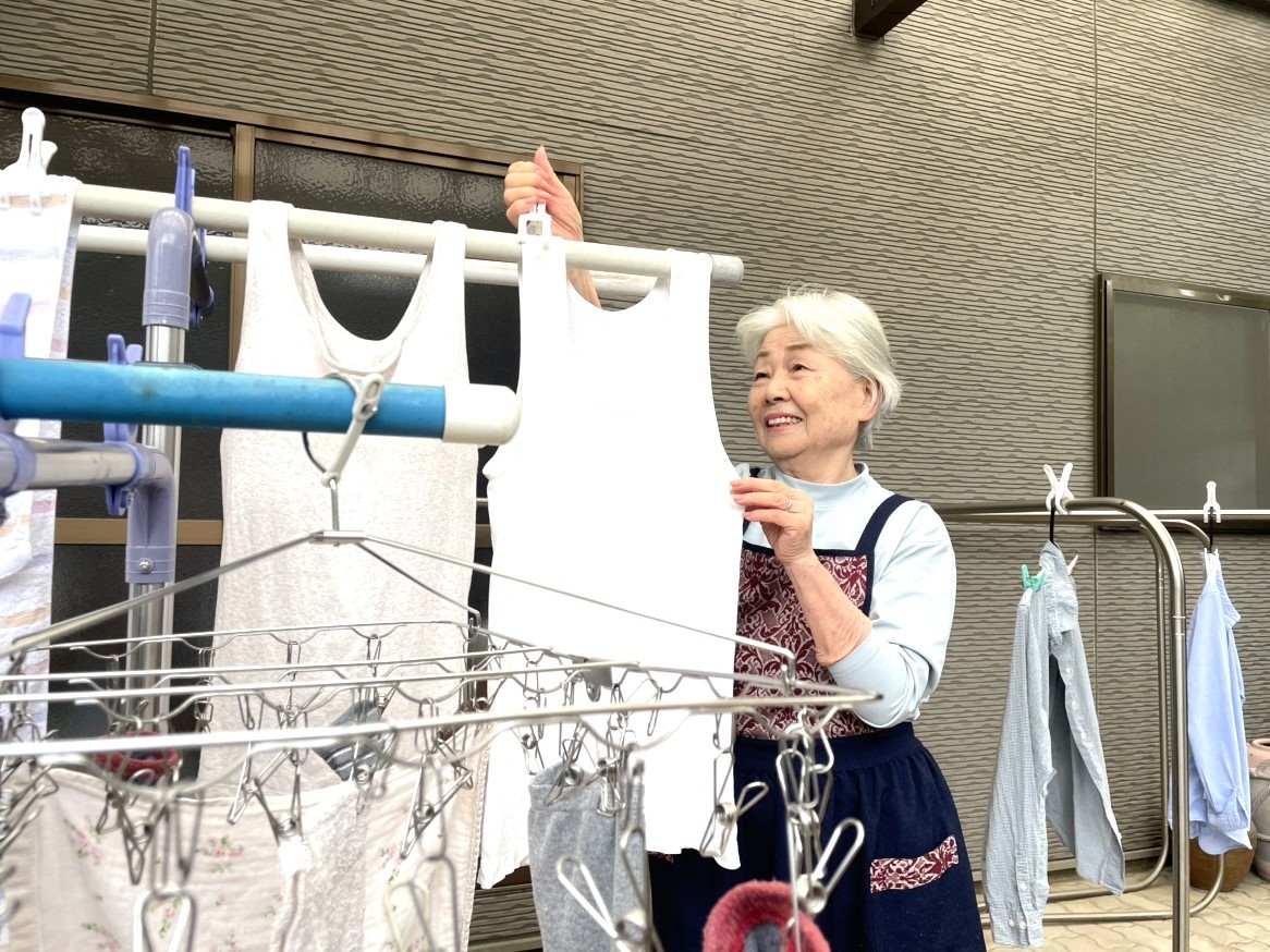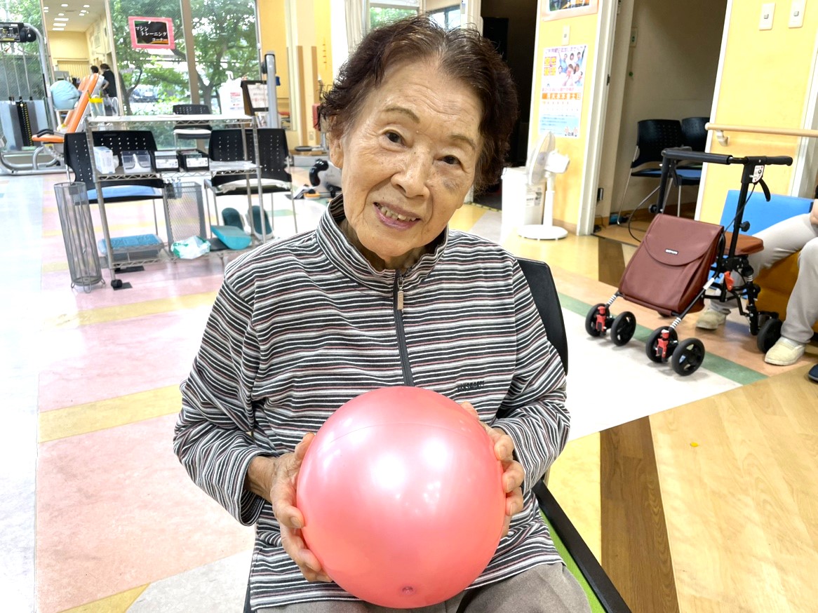 周囲の方々と一緒に楽しみながら様々な機能訓練に取り組む中で、少しずつご自身の身体に変化を感じ始められました。以前は骨折により『上がらなかった腕が、上がるようになっていかれた』のです。そのことで、以前は腕が上がらず難しかった洗濯干しも両手でできるようになり、また、料理のあとの食器も自分で食器棚に片づけることができるようになられました。また、子供たちが泊まりに来た後の「布団も両手で持ち上げ片づけることが出来るようになった」と嬉しそうに話されていました。今では、機能訓練だけでなく周囲の方々との会話も楽しまれ、社交的だった「本来の自分を取り戻すことができた」と笑顔で話されていました。