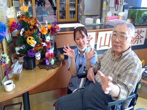 10月15日、デイサービスセンター ナービス堂山公園ではご利用者の皆さまにお手伝いいただき、『ハロウィン』の飾り付けを行いました