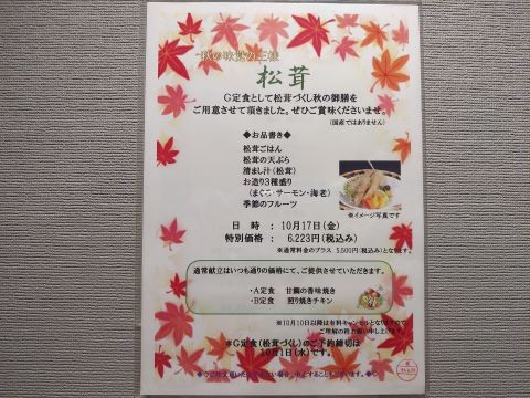 10月17日、ベルパージュ大阪帝塚山のディナーで『松茸』が登場しました。