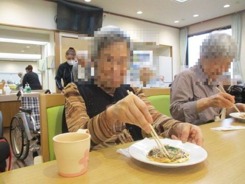「大阪のソウルフードですね」「お好み焼きは何枚でも食べれるわ!おかわりください!」と皆さまあっという間にペロリと召し上がっておられました♪