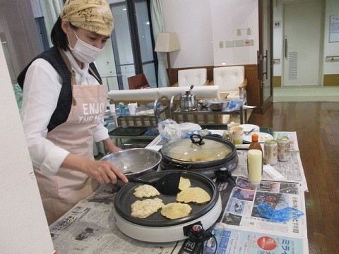 10月19日、ユトリーム大阪北では『お好み焼き』をご用意いたしました。 目の前で『お好み焼き』を焼かせていただき『できたて熱々』を提供させていただきました♪
