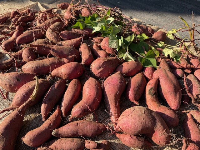 収穫したお芋は、風通しの良い日陰で乾燥させます。