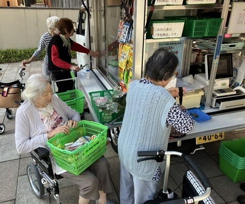 「10月なのに暑いね、でも真夏よりマシかな?」「のど飴欲しいな。」「アイスも売ってるの!!」等おしゃべりをしながら、ご入居者さまは楽しそうにお買い物をしておられました。皆さま次週のご利用もお待ちしております。