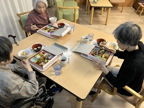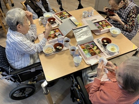 ご入居者さまから「美味しいよ。いろんな種類があって楽しい♪」「目でも楽しめていいですね。」「お腹いっぱいになっちゃうわ。」と笑顔で感想を聞かせてくださいました。定期的にイベント食を開催しますのでお楽しみにお待ちください。