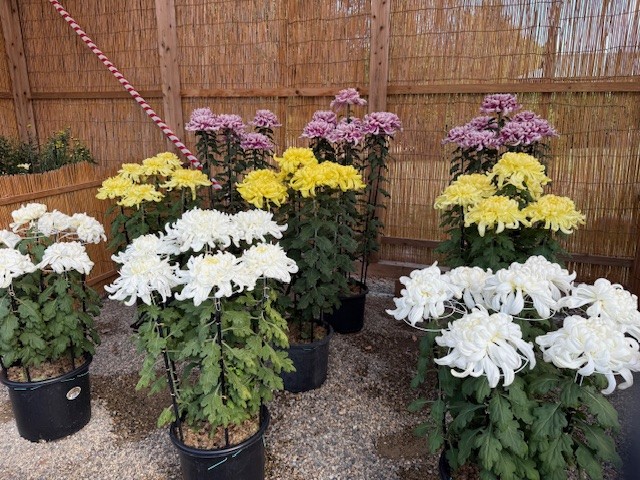 菊花展は、菊はもちろんのこと、盆栽や盆景などもあり、剪定に訪れていた出品者の方の手技を、間近で見ることができました。
