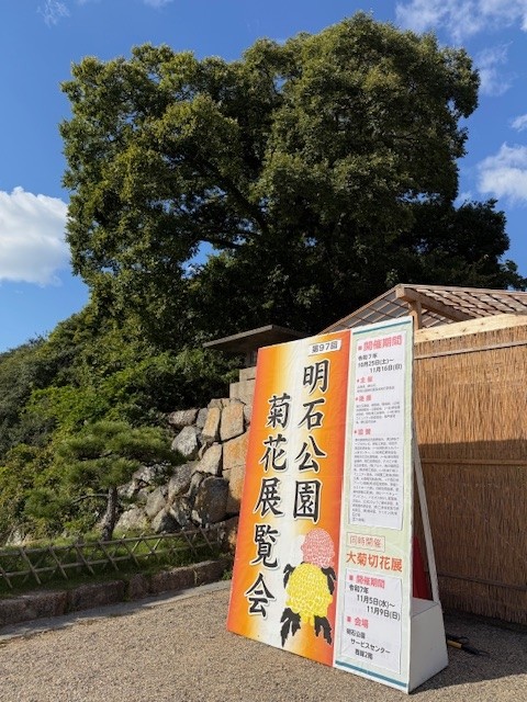 『明石公園菊花展覧会』は、明石の秋を彩る代表的な恒例行事です。お天気もよく、こちらも菊を見るかたがたくさん訪れていました。