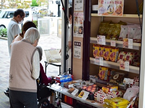 ご入居者さまやご家族さまは、「どれにしようかな」と笑顔で商品を選ばれ、店員さんから商品の魅力やおすすめポイントを聞きながら、特別なお買い物体験を楽しまれました。また、数量限定の商品や季節限定のスイーツも登場し、「今しか買えない」と聞いたご入居者さまが笑顔でお買い物される場面も見られました。イベント中には、近隣の方々も足を止めてくださり、「中で買えるの?」とお声をかけていただくなど、地域の方との交流のきっかけにもなりました。今後も、ローズライフ京都ではご入居者さまやご家族さまが日々の暮らしの中で彩りや楽しみを感じていただけるよう、さまざまなイベントを企画してまいります。