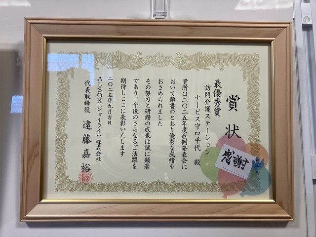 『2025年問題』が社会問題として注目を浴びる中、『訪問介護員』をテーマとして、日々の取り組みについて『考えるとき』となりました。スタッフ皆さまの日々の取組み成果の賜物が『最優秀賞』として実を結ぶことができ、事業所内での一体感が強くなりました♪今後もスタッフ全員で、より一層のサービス向上に努めて参ります♪