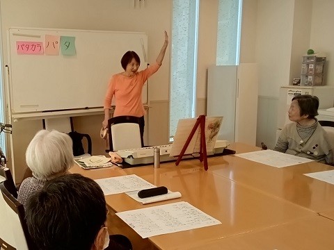 まずは恒例の「パ・タ・カ・ラ」の発声練習と早口言葉の練習です。