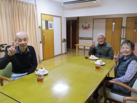 お祝い事は、みんなを笑顔にさせてくれ、今回もケーキを美味しく召し上がっていただけました♪