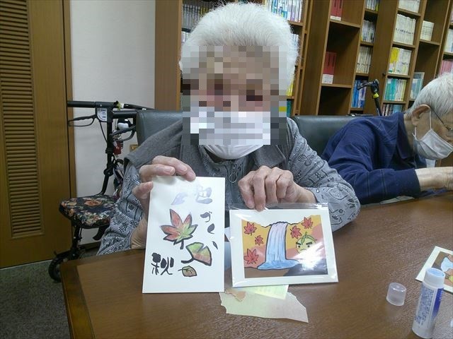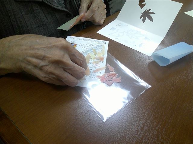 普段のペーパークラフトより指先をよく使うので「そんなに小さくちぎれないわ~」と仰りながらも指の運動のつもりで頑張っていただきました。