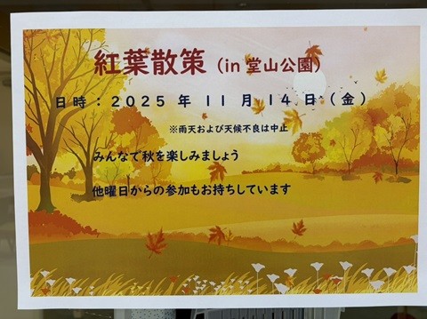 秋のイベントと平行して、そろそろ『Xmas』の飾り付けも、ご利用者さまと一緒に進めていきたいと考えています。飾り付けが済んだら、一気に年末ムードが盛り上がってくるのでしょうね♪
