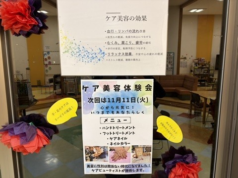 まずは、直近のイベントとしては11月11日実施の『ケア美容会』です。こちらの企画は毎月恒例なのですが、施術してくれるケアビューティストの方が皆さまに楽しんでいただけるよう、毎回趣向を凝らして手も足も綺麗に美しくなるイベントです! そして秋といえば、11月14日実施の『紅葉散策』です。こちらも毎年恒例で、ナービス堂山公園の名前の由来でもある『堂山公園』へ、綺麗に色付いた紅葉をお散歩がてら皆さまと愛でにまいります。