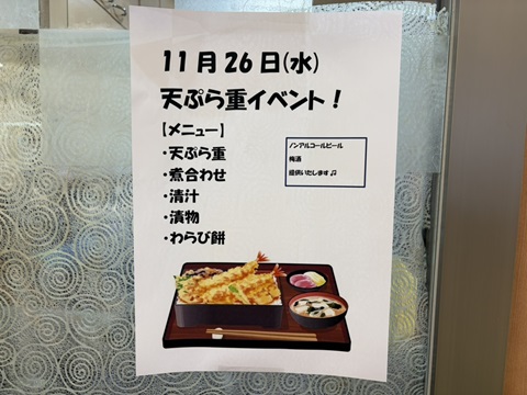 3つ目のイベントは、11月18日実施の『篠笛演奏』です!これは、以前お願いしました太鼓演奏のボランティアチームの方々が、今度は篠笛をメインで来てくださることになりました。。最後は『食事イベント』としまして『天ぷら重』をいただきます♪ 食欲の秋!美味しいものを食べて、身体も心も満たしていただいて、これからの寒い季節を元気にのりきっていきましょう♪ それぞれのイベント担当者も、張り切って企画進行中です。