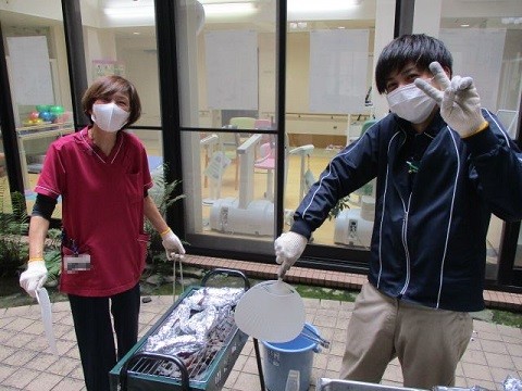 11月2日、ユトリーム大阪北では、おやつイベントに『やきいも』をご用意いたしました。1階中庭でスタッフが網で焼かせていただき、皆さまに『できたてホクホク』をお召し上がりいただきました!