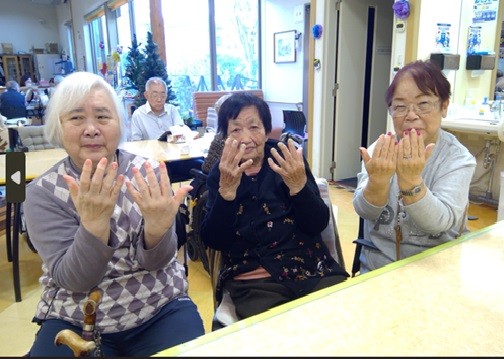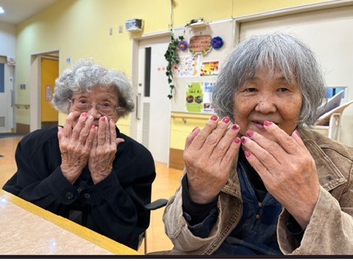 施術してもらった爪を皆さんで見せ合って「この色いいね!」「素敵‼」と褒めあっていました。最後に、きれいになった爪を見せてとびきりの笑顔で写真撮影を行いました。