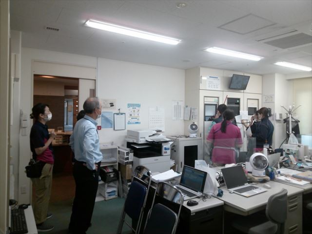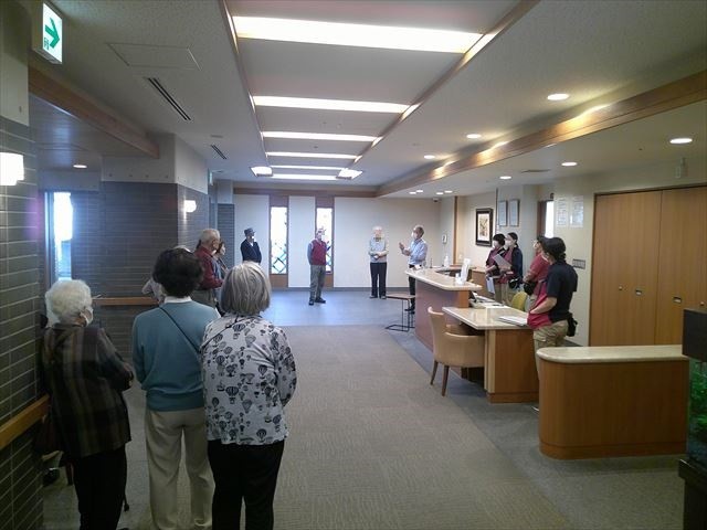 ご入居者さまにもご参加いただき、実際に非常ベルと館内放送を利用し、館内の階段を使って訓練を実施しました。