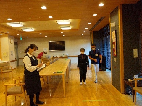 当施設では、普段の生活では気づきにくい運動機能の変化を確認し、今後の健康づくりや転倒予防に役立てるため毎年『体力測定』を開催しています。