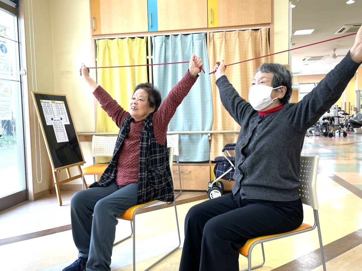 ご利用中に「ほら、姿勢がきれいになったでしょ」と、鏡の前で嬉しそうに姿勢を見せてくださいました。ご自宅でもスッと立てるようになられたことから、次の活動への行動が速くなったと、とても嬉しそうにお話いただきました。もともと家事がお好きで「これからも楽しみながら頑張っていきたい」「フレンドマートまで自転車で通い続けることができるように、継続して運動を頑張っていきたい」と話しておられました。