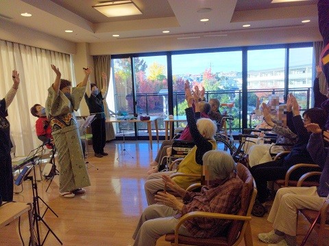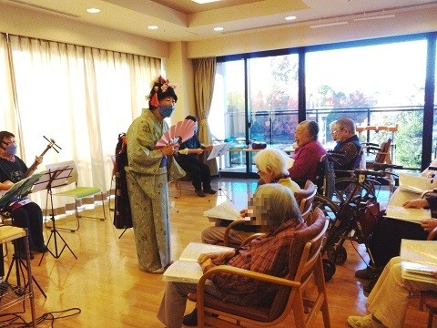 11月23日、ベルバージュ奈良あやめ池ケアレジデンスにて三笠会の皆さまをお迎えし、『三味線演奏会』を開催いたしました。