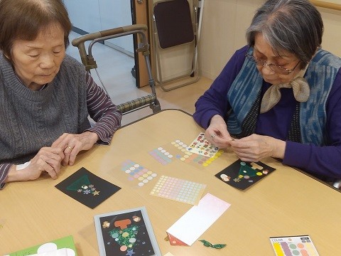 11月23日、ユトリーム朝霧では『クリスマスカード作り』を行いました。