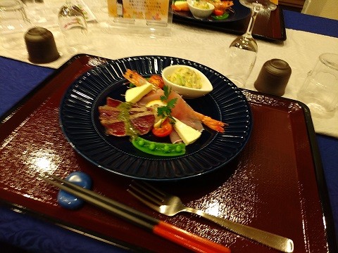オードブルに『炙りマグロのカルパッチョ』や『海老と生ハムのマリアージュ』をご用意。