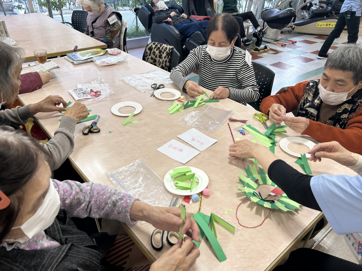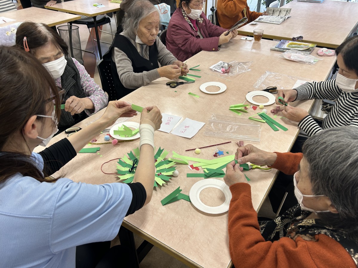 11月30日、デイサービスセンター ナービス守口では『クリスマスリースの制作レク』を行いました。