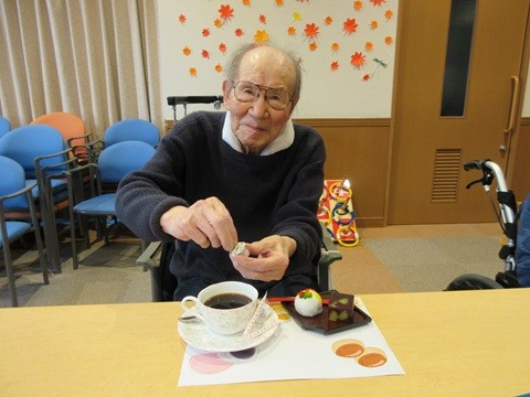 11月23日と30日、ローズライフくずはで『秋のお茶会』を開催しました。『パティスリー グランディ―ル』さんのケーキと『九十九堂』さんの和菓子から事前にお好きなものを選んでいただきました。「秋らしいお菓子ね」「わーきれい」「やわらかいわ」特別感のあるティータイムになりました。