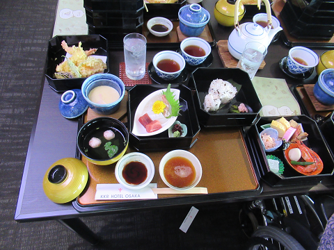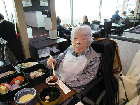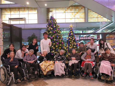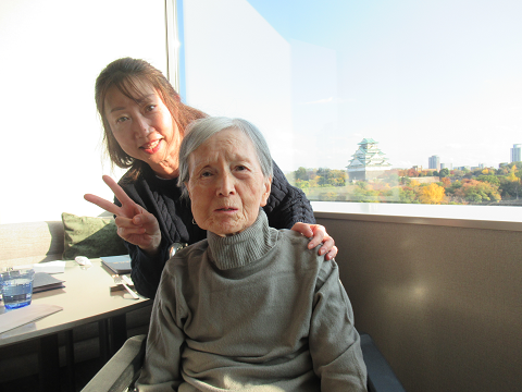 ランチをご希望の皆さまは、秋の大阪城を遠望されながらKKRホテルの聚楽庵で懐石を召し上がっていただきました。「すごい!豪華な食事ね~♪」「美味しい!来てよかった♪」「ここから大阪城もよく見えていいね♪」とスタッフとの会話も弾み、笑顔で完食されました。帰りの車を待つ間にクリスマスツリーが飾られたロビーで記念撮影♪楽しい一日を過ごされました。