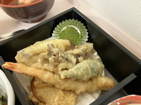 「1日のメニュー楽しみなんです。」「舞茸の天ぷら美味しかったですよ。」
