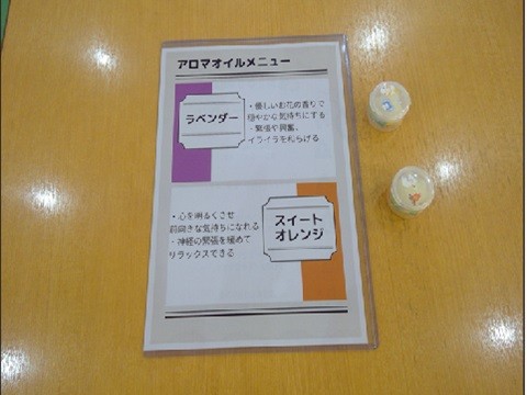 次に、紙コップに入れたプロペトにお好みのアロマ液を数滴垂らして香り付けを行いました。今回はラベンダーとスウィートオレンジの2種類の香りを用意していただきました。「花が好きだから私はラベンダーの香りにする」「リラックスしたいからオレンジの香りがいいかな♪」などおしゃべりしながら選ばれていました。そしてアロマ液を入れたプロペトをしっかりと練って混ざるように皆さま真剣に作業されていました。