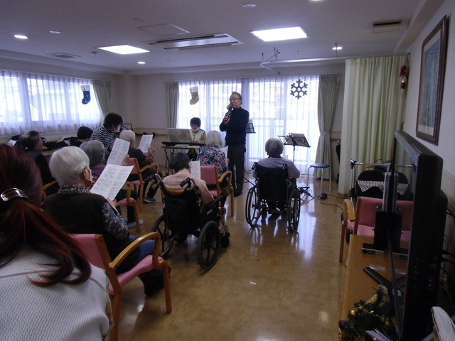 12月3日、ナービス藤井寺恵美坂では 毎月恒例の『唄ってバンド』の時間です。今月の楽曲♪冬景色・山小舎の灯・あざみの歌・寒い朝・ここに幸あり・学生時代・ジングルベル・きよしこの夜♪でした。