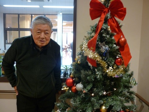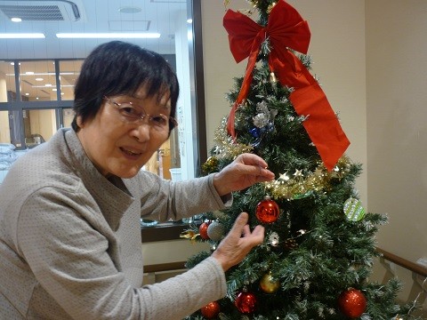 ご入居者さまのご協力で、今年も温かみのある『クリスマスツリー』が完成しました。これからも季節の行事を通じて、皆さまに笑顔と楽しみをお届けできるよう努めてまいります。