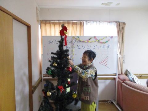 12月9日、グループホームしらさぎでは11月下旬より皆さまとコツコツ『クリスマスツリー飾り付け』を行い完成のご報告をさせていただきます♪