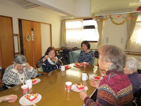 パフォーマンスが終われば、各階に分かれて茶話会でクリスマスケーキをいただきました♪