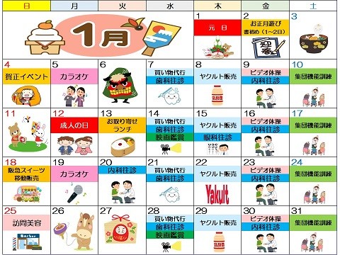 (大阪北)1月レクリエーションカレンダー・ゆときた通信