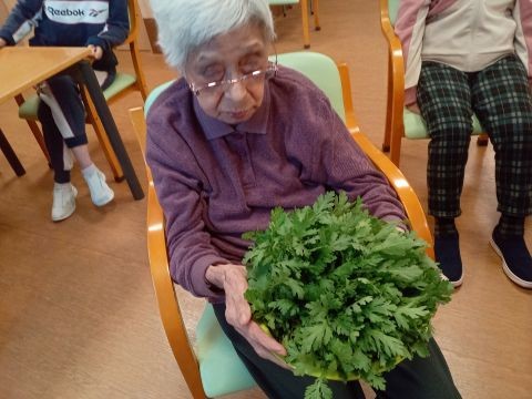 山盛りの春菊に「すごいなぁ」と驚かれていました!今年は、たくさん収穫できました♪